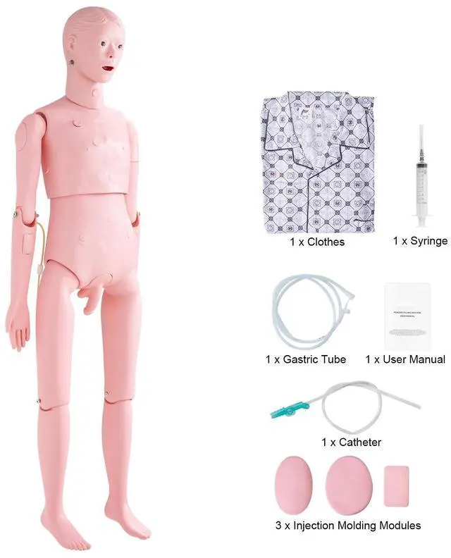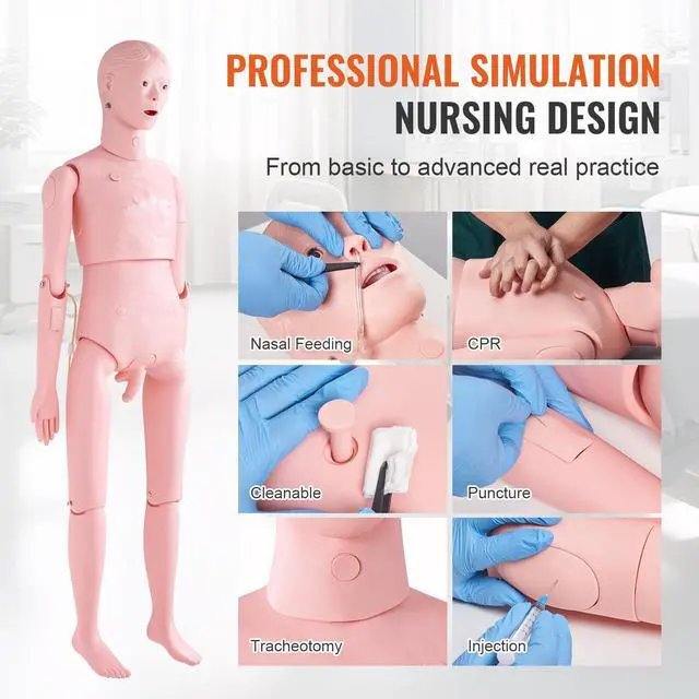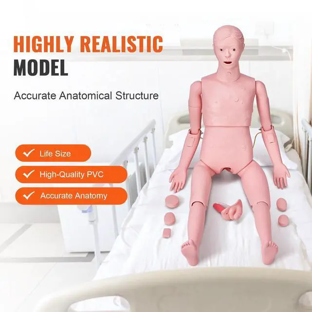 VEVOR Nursing Training Manikin, Male Life Size Demonstration Human Manikin for Nursing Training, Multifunctional Education Teaching Model Supplies, PVC Anatomical Mannequin Body Care Simulator Model