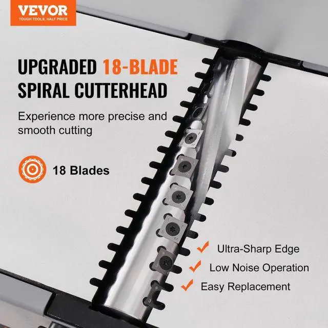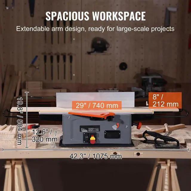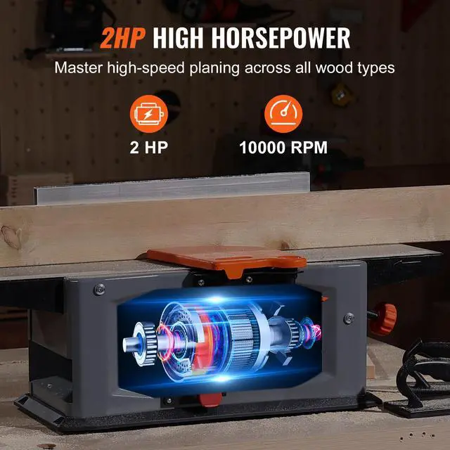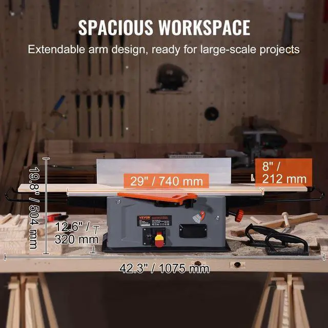 VEVOR Spiral Benchtop Jointer, 8-Inch, 2HP 10000 RPM Bench Top Wood Jointer, 18-Blade Spiral Cutterhead with Extendable Arm up to 6.5'' and 8x42.3'' Worktable 0-1/8'' Adjustable Depth, for Woodworking