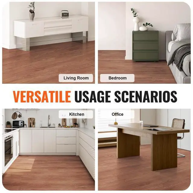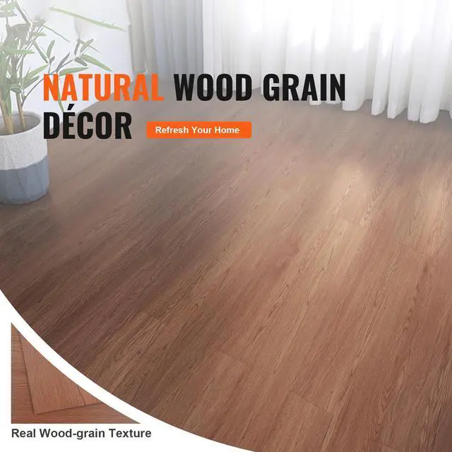 VEVOR Self Adhesive Vinyl Floor Tiles 36 x 6 inch, 36 Tiles 2.5mm Thick Peel & Stick, Deep Brown Wood Grain DIY Flooring for Kitchen, Dining Room, Bedrooms & Bathrooms, Easy for Home Decor