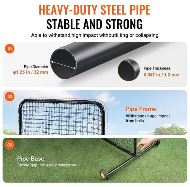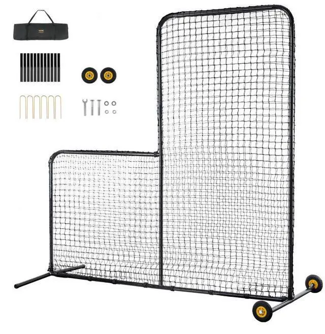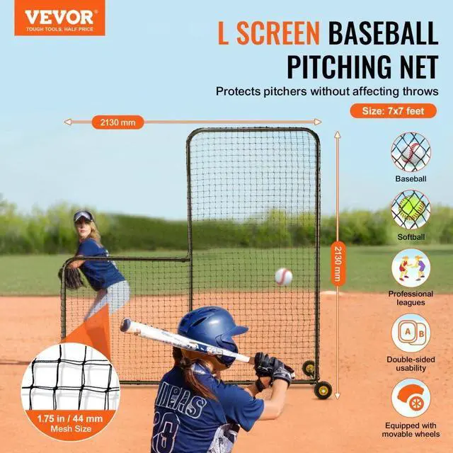 VEVOR L Screen Baseball for Batting Cage, 7x7 ft Softball Safety Screen, Body Protector Portable Batting Screen with Carry Bag, Wheels, Ground Stakes, Heavy Duty Pitching Net for Pitchers Protection