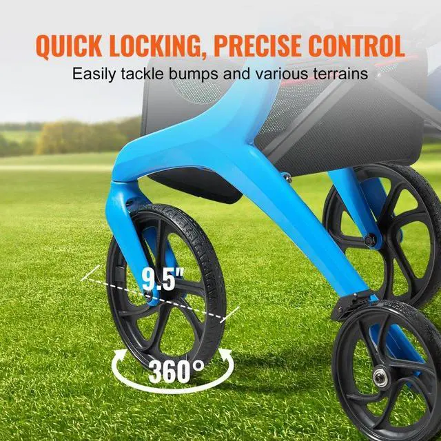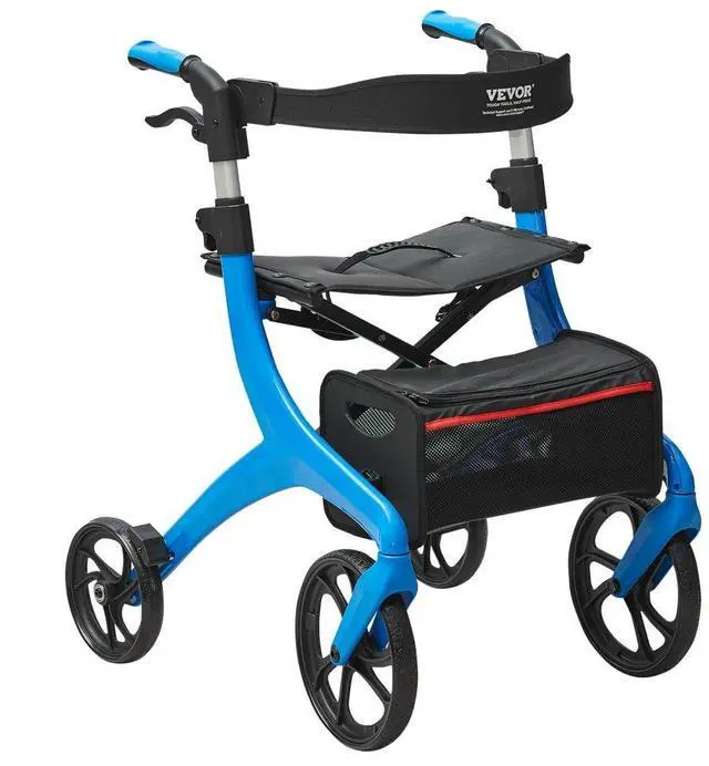 VEVOR Folding Rollator Walker for Seniors and Adults, Lightweight Aluminum Rolling Walker with Seat and Adjustable Handle, 4-Wheel Outdoor Mobility Walker with Spacious Storage Bag, 300LBS Capacity