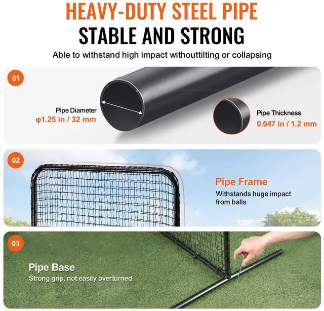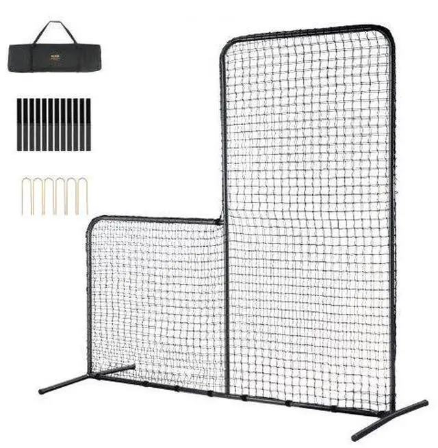 VEVOR L Screen Baseball for Batting Cage, 7x7 ft Baseball Softball Safety Screen, Body Protector Portable Batting Screen with Carry Bag & Ground Stakes, Heavy Duty Pitching Net for Pitchers Protection