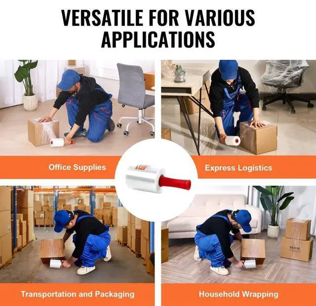 VEVOR Stretch Film, 5 inches x 1000 feet, 2 Pack, 80 Gauge Industrial Strength Clear Durable Stretch Wrap Roll, Heavy Duty Shrink Film Stretch Wrap with Handles for Pallet Wrapping Shipping Moving