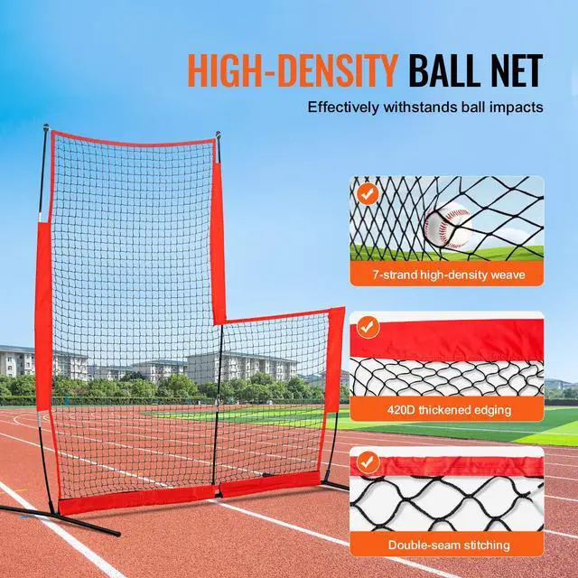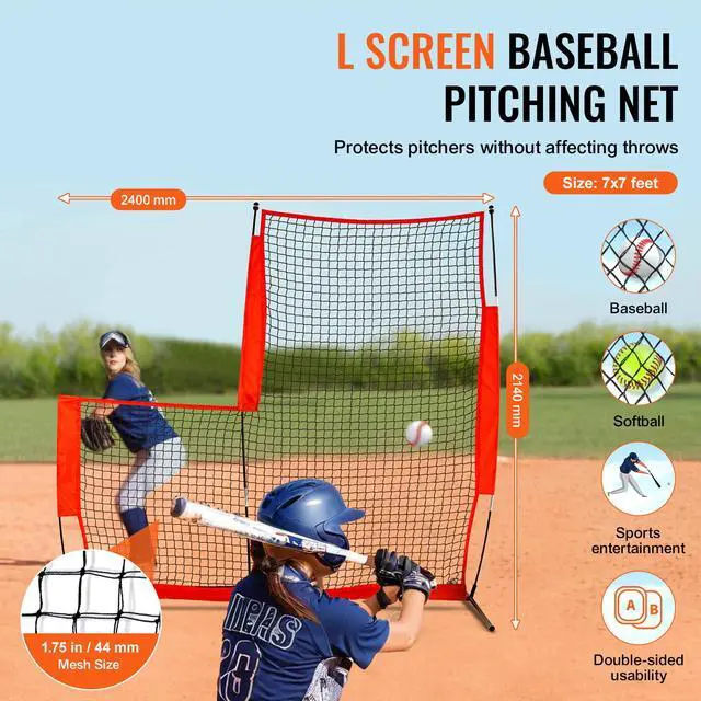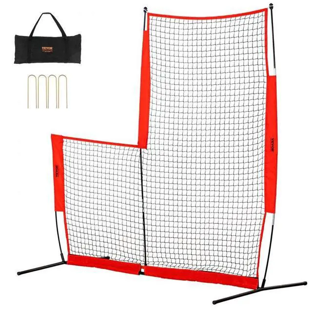 VEVOR L Screen Baseball for Batting Cage, 7x7 ft Baseball & Softball Safety Screen, Body Protector Portable Batting Screen with Carry Bag & Ground Stakes, Baseball Pitching Net for Pitchers Protection