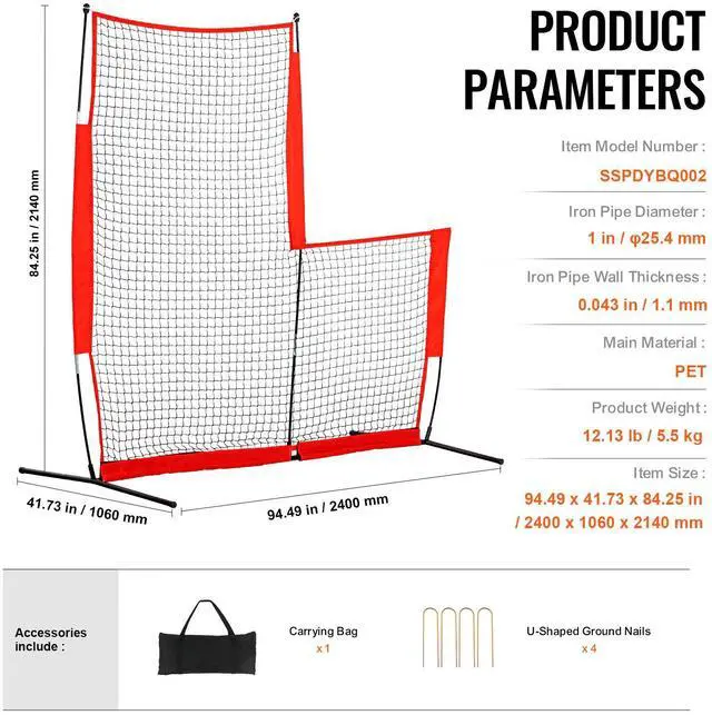 Iron Pipe Diameter: 1 inch / 25.4 mm,Iron Pipe Wall Thickness: 0.043 inch / 1.1 mm,Item Size: 94.49x41.73x84.25 inch / 2400x1060x2140 mm,Item Model Number: SSPDYBQ002,Product Weight: 12.13 lbs / 5.5 kg,Main Material: PET Net