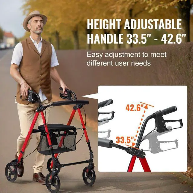 VEVOR Rollator Walker for Seniors and Adult, Lightweight Aluminum Foldable Rolling Walker with Adjustable Seat and Handle, Outdoor Mobility Rollator Walker with 8" All Terrain Wheels, 300LBS Capacity