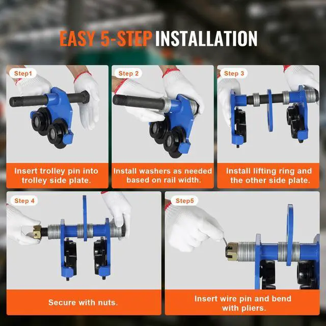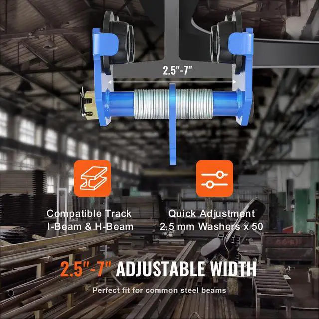 VEVOR Manual Trolley, 4400 lbs/2 Ton Load Capacity, Push Beam Trolley with Dual Wheels, Adjustable for I-Beam Flange Width 2.5" to 7", Heavy Duty Alloy Steel Garage Hoist for Straight Curved I Beam
