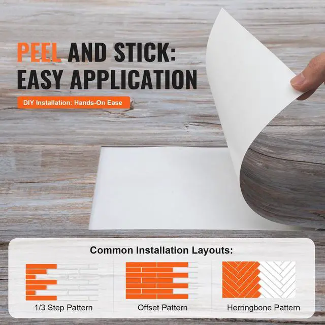 VEVOR Self Adhesive Vinyl Floor Tiles 36 x 6 inch, 36 Tiles 0.62mm Thick Peel & Stick, Vintage Wood Grain DIY Flooring for Kitchen, Dining Room, Bedrooms & Bathrooms, Easy for Home Decor