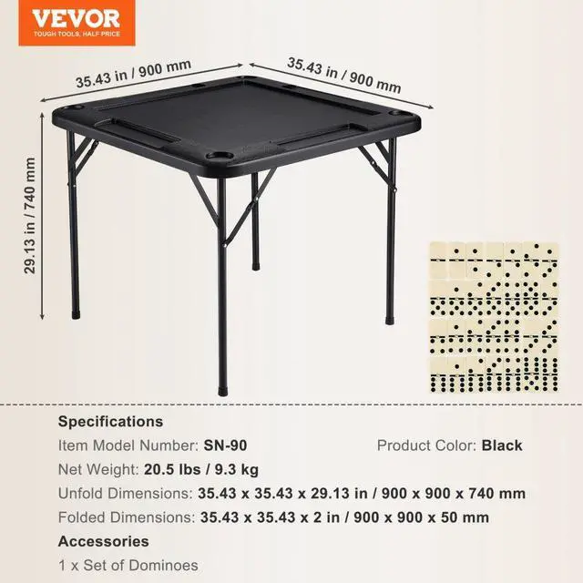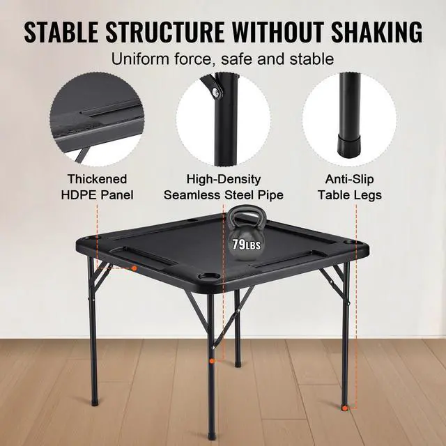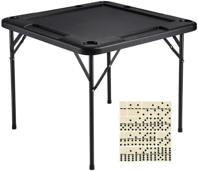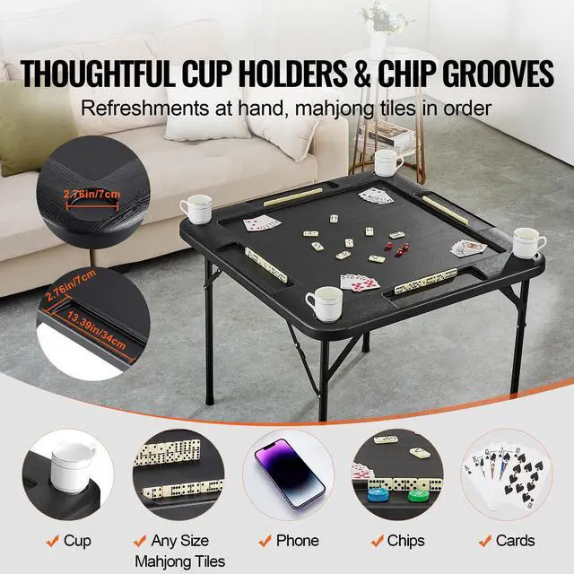 VEVOR Mahjong Table 4 Player Folding Card Table & 4 Cup Holders Chip Trays Black