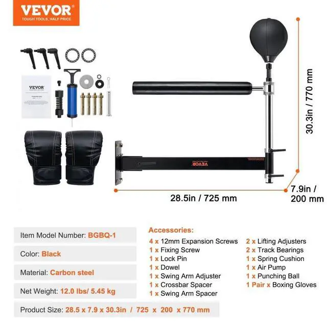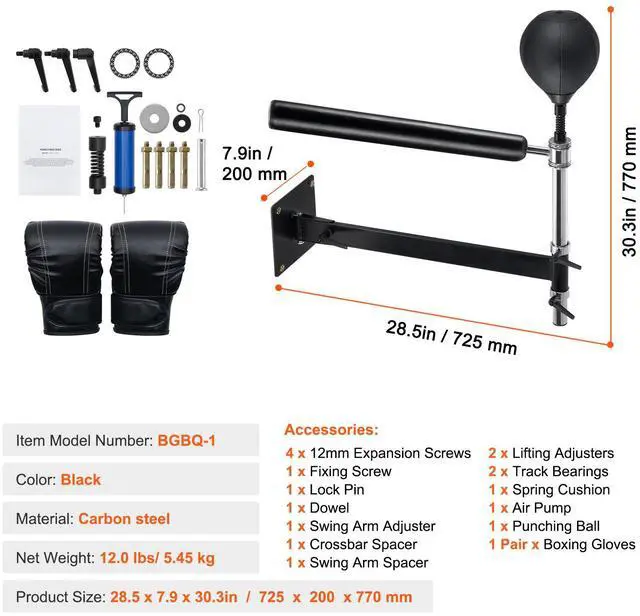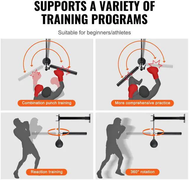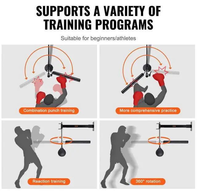 VEVOR Wall Mount Boxing Spinning Bar, Spinning Bar with Punching Ball, Adjustable Boxing Speed Trainer, Reflex Boxing Bar with Gloves, Boxing Training Equipment for Kickboxing, MMA, Fitness