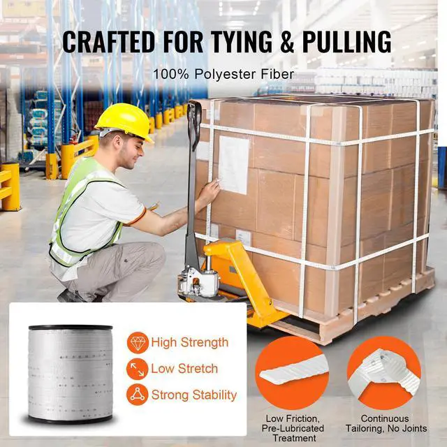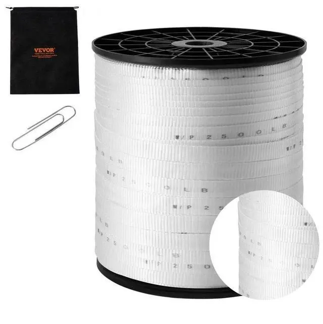 VEVOR Polyester Pull Tape, 3/4" x 1053' Mule Tape Flat Rope, 2500 lbf Tensile Capacity, Printed Webbing Cable Pulling Tape for Packaging, Gardening, Commercial Electrical, Conduit Work, White