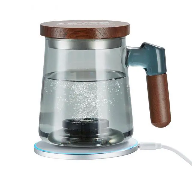 VEVOR Hydrogen Water Cup, 400 ml / 14.1 oz Hydrogen Generator, SPE Technology Portable Hydrogen Water Ionizer Machine with Wireless Charging Base, Hydrogen Rich Water Bottle Glass Health Cup