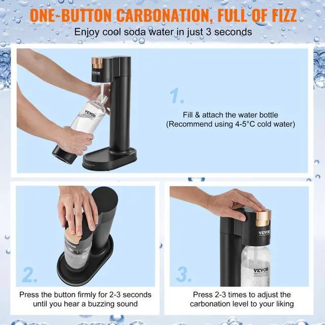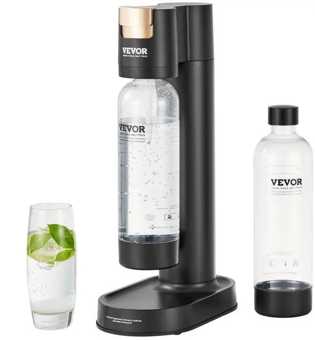 VEVOR Sparkling Water Maker, Soda Maker Machine for Home Carbonating, Seltzer Water Starter Kit with 2 BPA-free 1L PET Bottles, Compatible with Mainstream Screw-in 60L CO2 Cylinder(NOT Included) Black