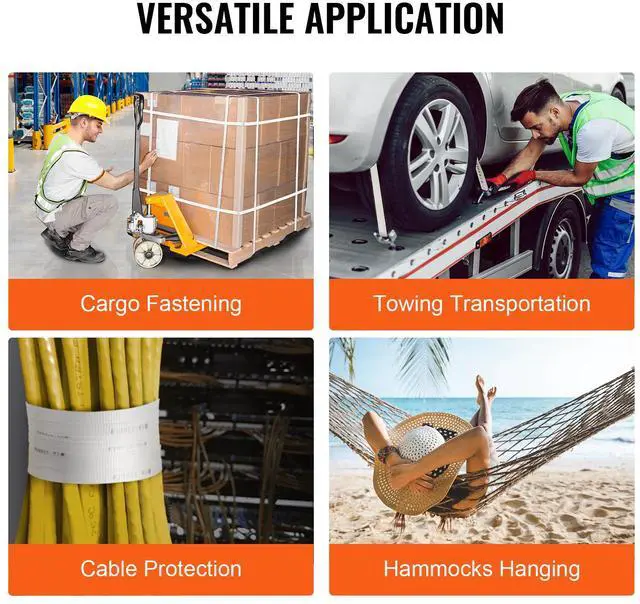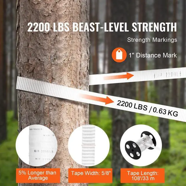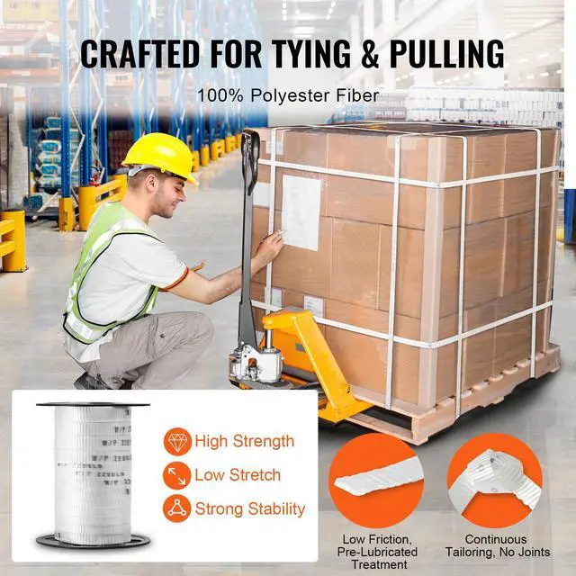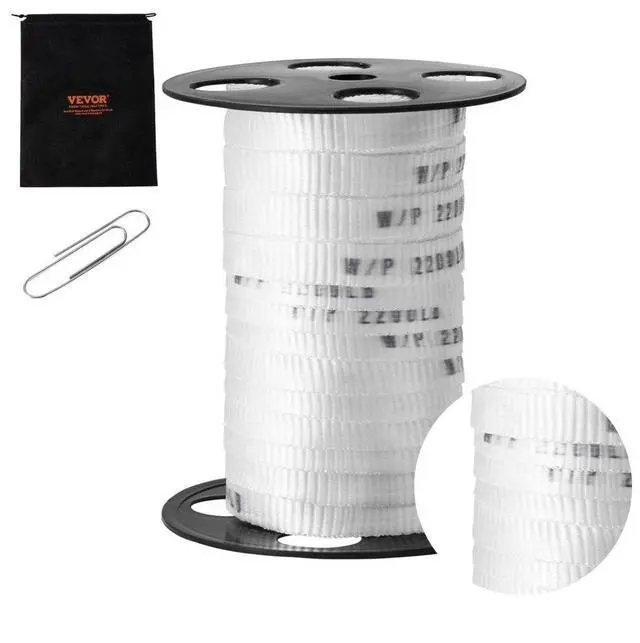 VEVOR Polyester Pull Tape, 5/8" x 108' Mule Tape Flat Rope, 2200 lbf Tensile Capacity, Printed Webbing Cable Pulling Tape for Packaging, Gardening, Commercial Electrical, Conduit Work, White