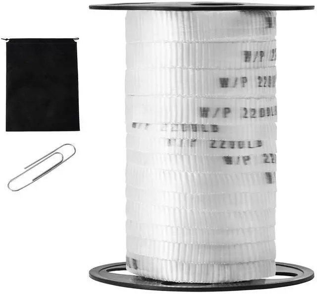 Pull Tape Size: 108' x 5/8" (33 m x 1.6 cm),Pull Tape Material: 100% Polyester Fiber,Color: White,Item Model Number: 33M159MXK8,Product Weight: 1.39 lbs/0.63 kg,Stretch Strength: 2200 lbf/998 kgf,Pull Tape Thickness: 0.06"/1.5 mm,Reel Material: Polypropylene (PP),Product Size: 5.51" x 5.51" x 6.50"/140 x 140 x 165 mm