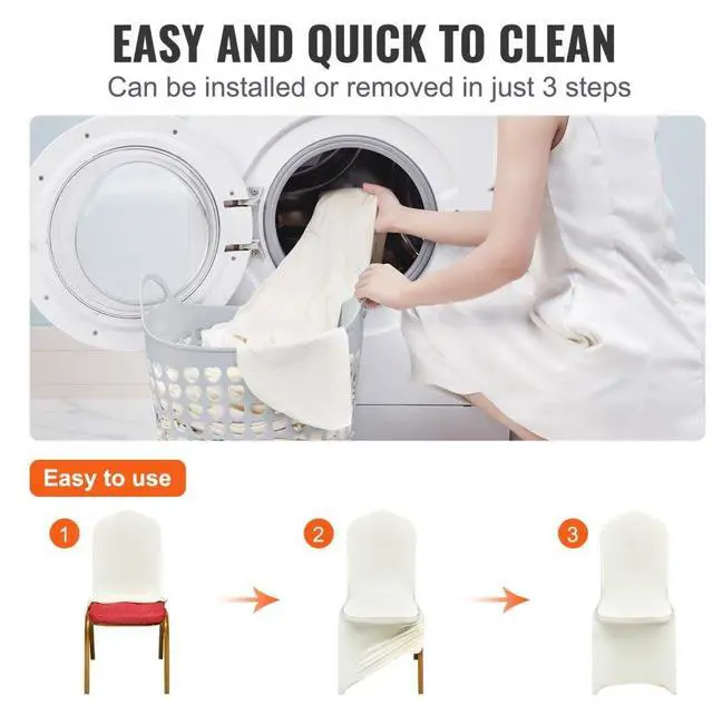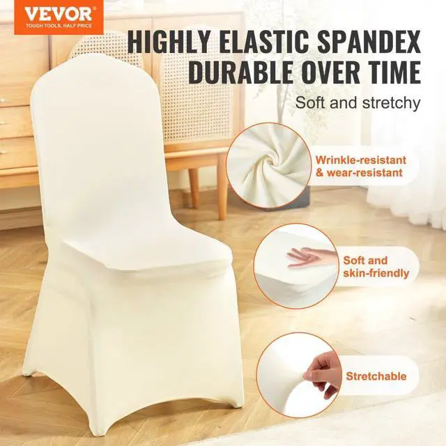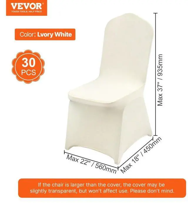VEVOR Stretch Spandex Folding Chair Covers, Universal Fitted Chair Cover, Removable Washable Protective Slipcovers, for Wedding, Holiday, Banquet, Party, Celebration, Dining (30PCS Ivory White)