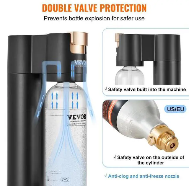 VEVOR Sparkling Water Maker, Soda Maker Machine for Home Carbonating, Seltzer Water Starter Kit with 2 BPA-free 1L PET Bottles, CO2 Cylinder, Compatible with Mainstream Screw-in 60L CO2 Cylinder