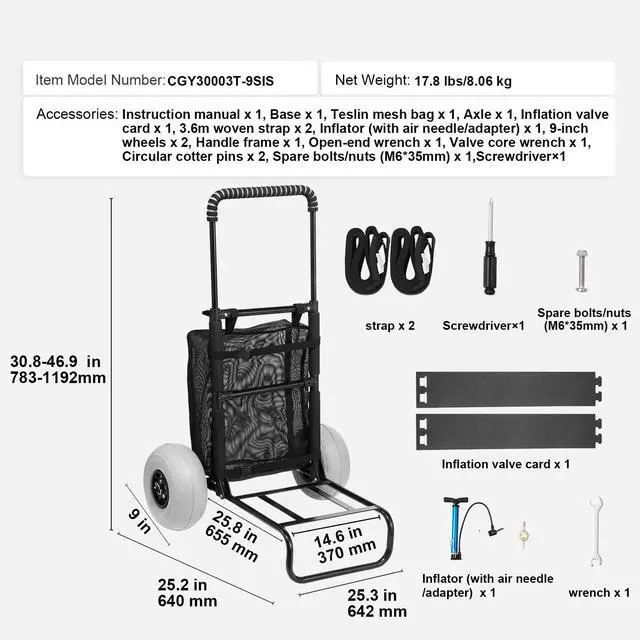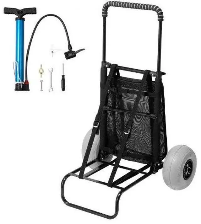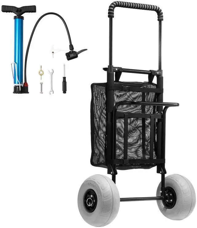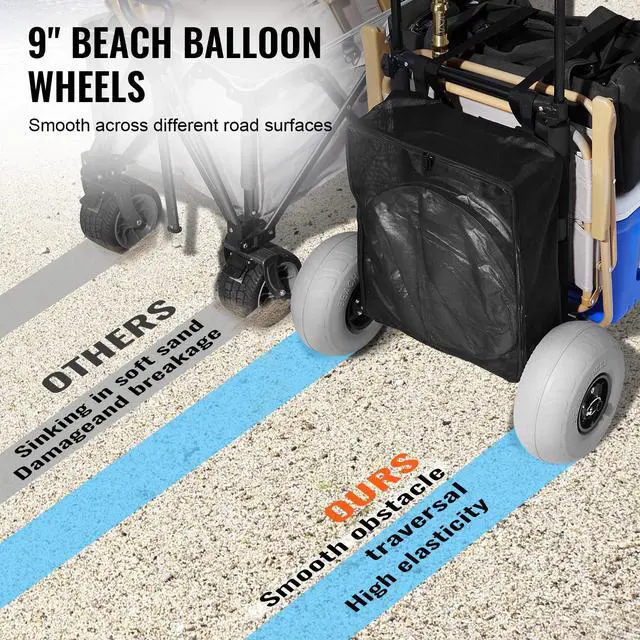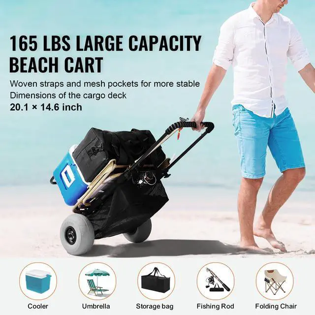 VEVOR Beach Dolly with Big Wheels for Sand, 20.1" x 14.6" Cargo Deck, w/ 9" Balloon Wheels, 165LBS Loading Capacity Folding Sand Cart & 27.2" to 44.9" Adjustable Height, Heavy Duty Cart for Beach