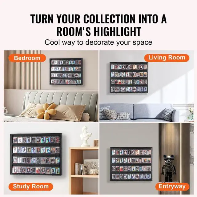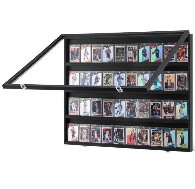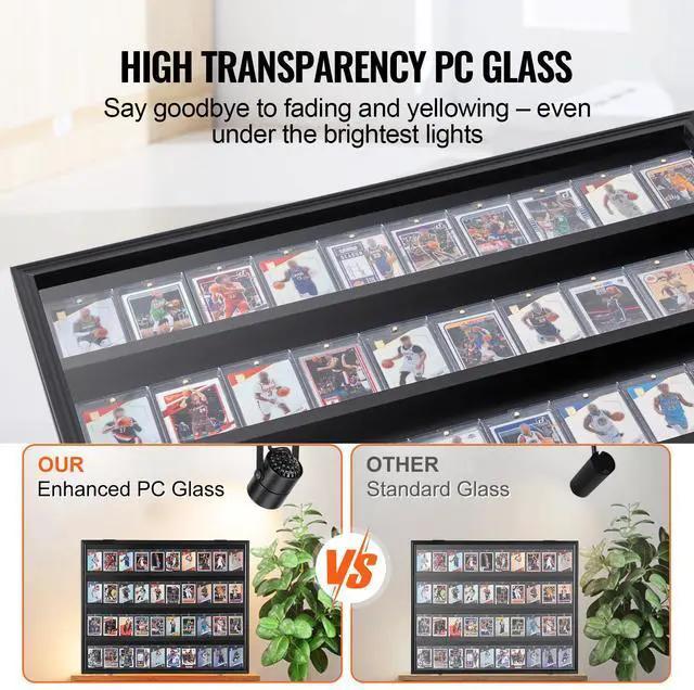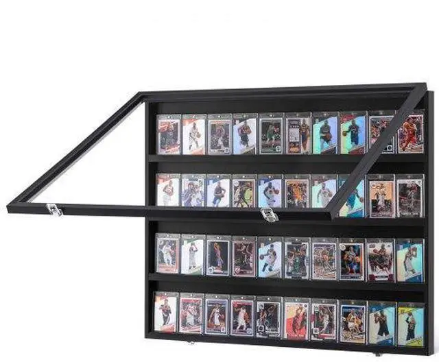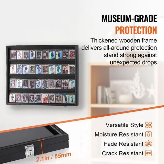 VEVOR 36 Graded Sports Card Display Case, 30.5x24.3x2.1 in, Baseball Card Display Frame with 98% UV Protection Clear View PC Glass, Lockable Wall Cabinet for Football Basketball Hockey Trading Card
