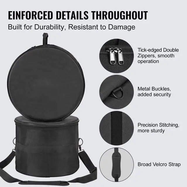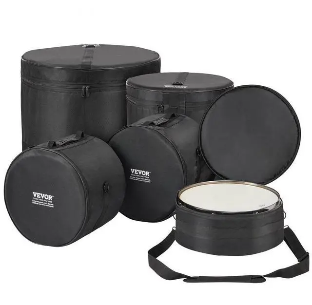 VEVOR 5-Piece Drum Bag Set, 1680D Oxford Fabric, Padded Drum Bags and Cases with 4.92 ft Detachable Shoulder Strap Carry Handles Foldable Design, for 22'' Kick 12'' Tom 13'' Tom 16'' Tom 14'' Snare