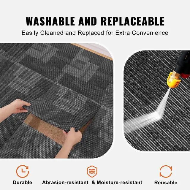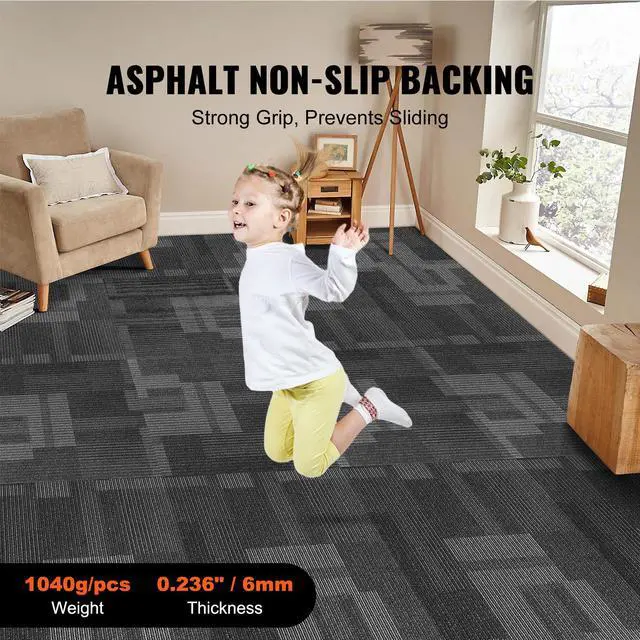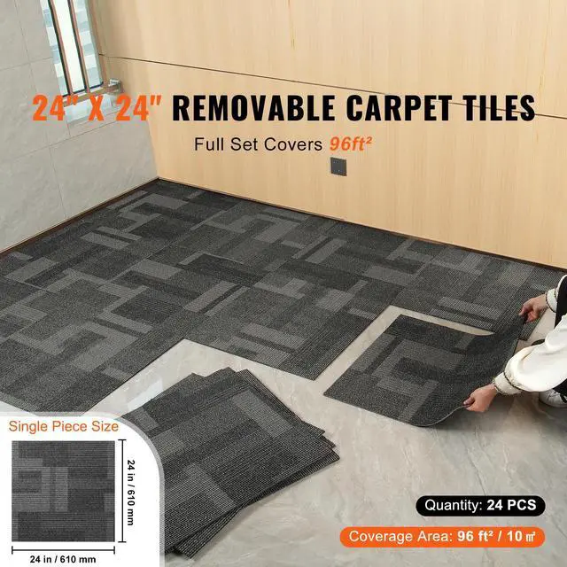VEVOR Carpet Tiles Reusable, 24"x 24"Carpet Squares With Padding Attached, Soft Padded Carpet Tiles, Easy Install DIY for Bedroom Living Room (24Tiles, Mixed Gray)