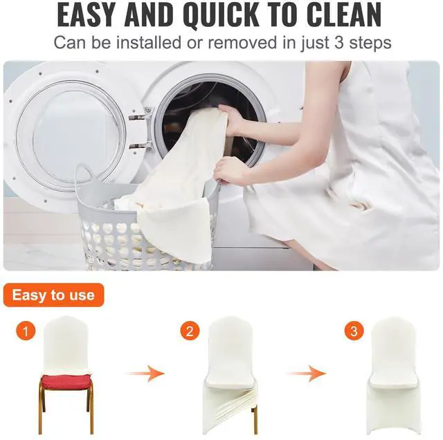 VEVOR Stretch Spandex Folding Chair Covers, Universal Fitted Chair Cover, Removable Washable Protective Slipcovers, for Wedding, Holiday, Banquet, Party, Celebration, Dining (50PCS Ivory White)