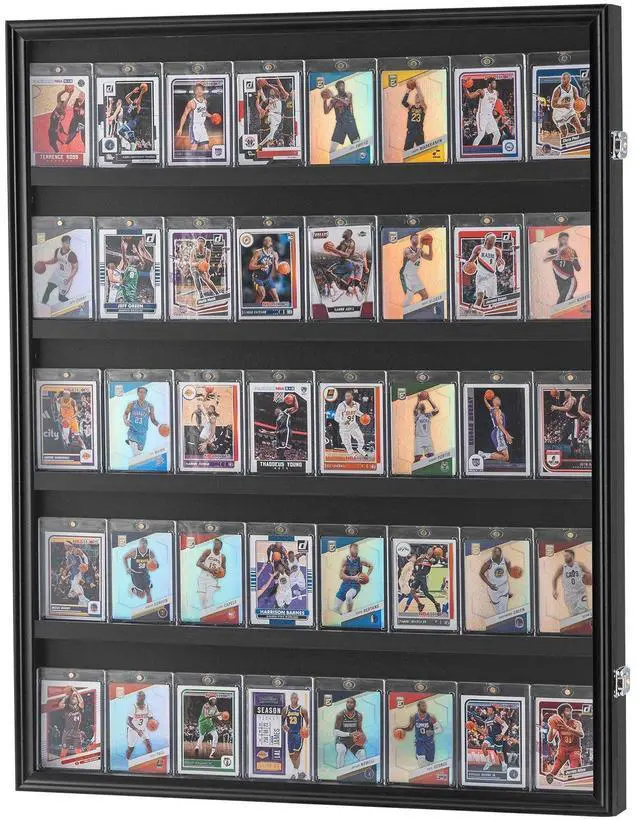 Matte Black Wood Frame: Measuring 24.3 x 30.5 x 2.1 inches (617 x 775 x 55 mm), our graded sports card display case is the perfect choice for displaying and preserving your cherished baseball, basketball, hockey, soccer, and other cards. Crafted from quality wood, the frame boasts a sleek matte black finish that's fade-resistant, ensuring your prized possessions stand out for years to come. (Cards and card sleeves not included)