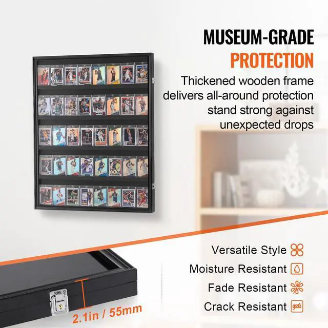 VEVOR 35 Graded Sports Card Display Case, 24.3x30.5x2.1 in, Baseball Card Display Frame with 98% UV Protection Clear View PC Glass, Lockable Wall Cabinet for Football Basketball Hockey Trading Card