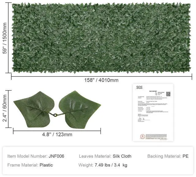 Leaves Material: Silk Cloth,Item Model Number: JNF006,Frame Material: Plastic,Backing Material: PE,Item Weight: 7.49 lbs / 3.4 kg