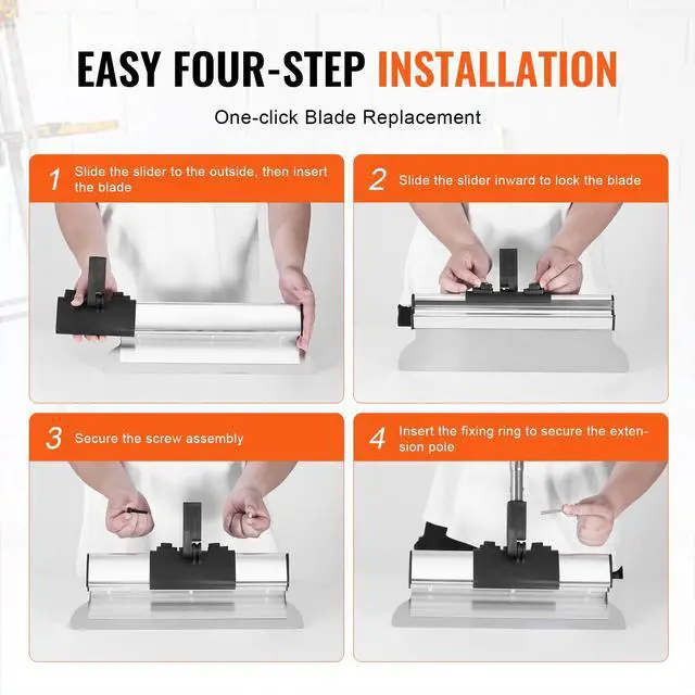 Handle Length: 33.94 - 81.57 inch / 862 - 2072 mm,Blade Thickness: 0.02 inch / 0.5 mm,Adjustable Handle Angle Feature: Yes,Blade Length: 7in/178mm,10in/254mm,14in/356mm,16in/406mm,24in/610mm,Handle/blade Material:Stainless Steel,Model: XSJ-24-S004,Frame Material: Aluminum Alloy,Handle Quick-connect: Yes,Product Dimensions: 43.11 x 12.99 x 3.15 inches / 1095 x 330 x 80 mm,Net Weight: 15.43 lbs / 7 kg,Handle Material: Stainless Steel