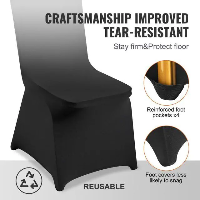 VEVOR Stretch Spandex Folding Chair Covers, Universal Fitted Chair Cover, Removable Washable Protective Slipcovers, for Wedding, Holiday, Banquet, Party, Celebration, Dining (50PCS Black)