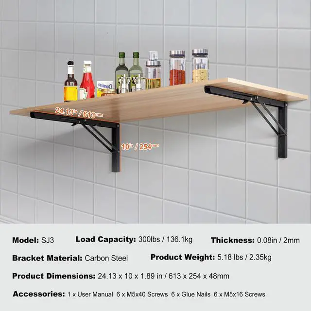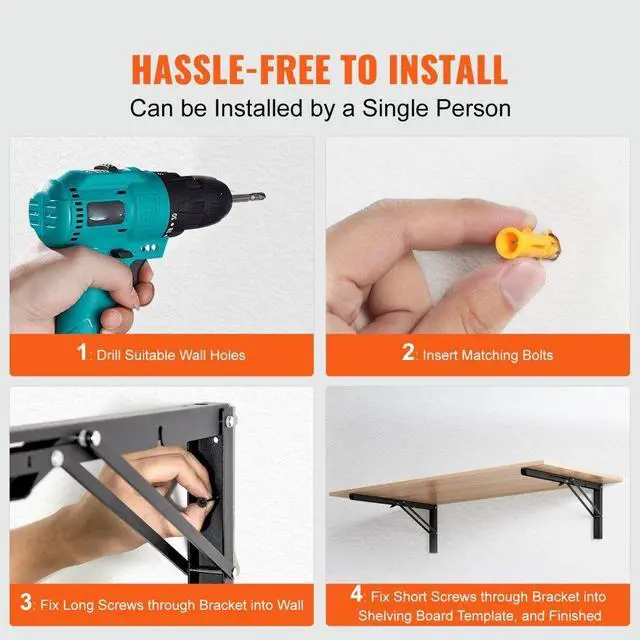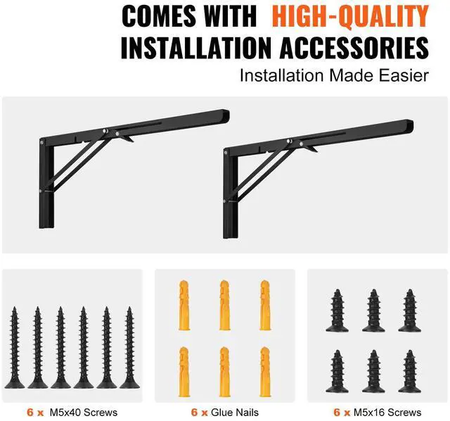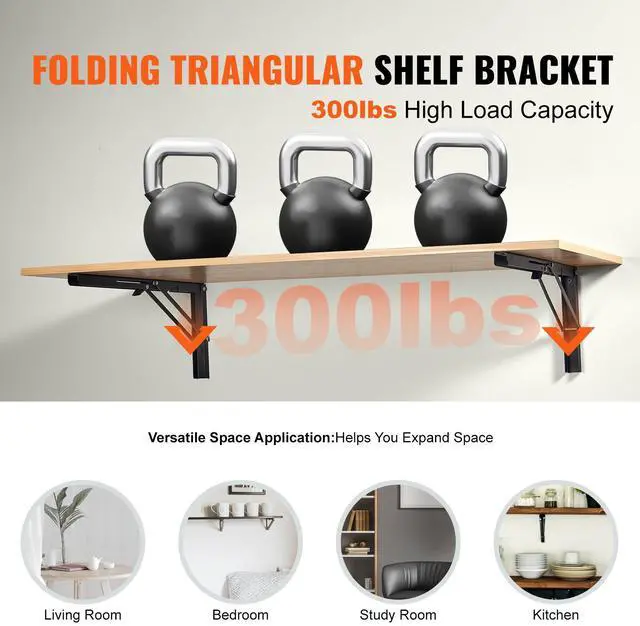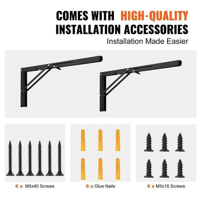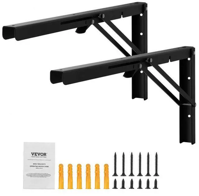 VEVOR Shelf Bracket Foldable, 24 L 2 Pcs , Heavy Duty Floating Shelf Brackets, Brackets for Shelves, 5mm Thick Matte Black L Shelf Bracket,Steel Shelving Brackets with 300 lbs Load Capacity