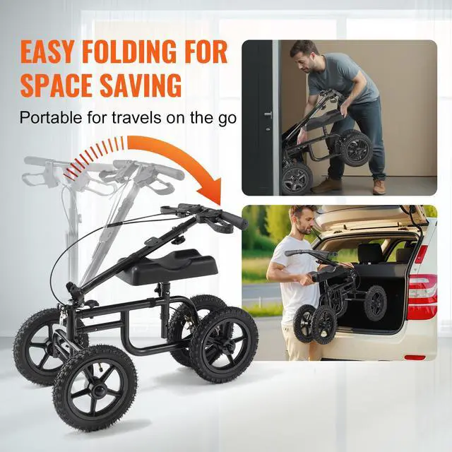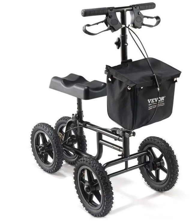 VEVOR Folding Knee Scooter, Carbon Steel Steerable Knee Walker with Height-Adjustable Handlebar & Knee Pad, 12" All-Terrain Wheel, Dual Brakes, Leg Recovery Scooter for Injured Ankle Foot Knee, 350LBS