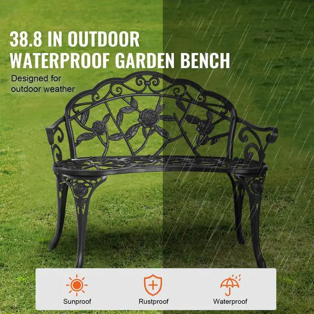 VEVOR Outdoor Bench, 38.8 inches Metal Garden Bench for Outdoors,480 lbs Load Capacity Bench, Outdoor Garden Park Bench with Backrest and Armrests, Patio Bench for Garden, Park, Yard, Front Porch