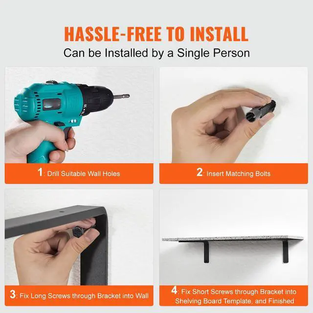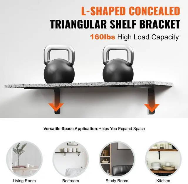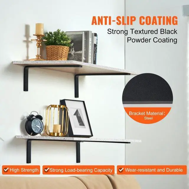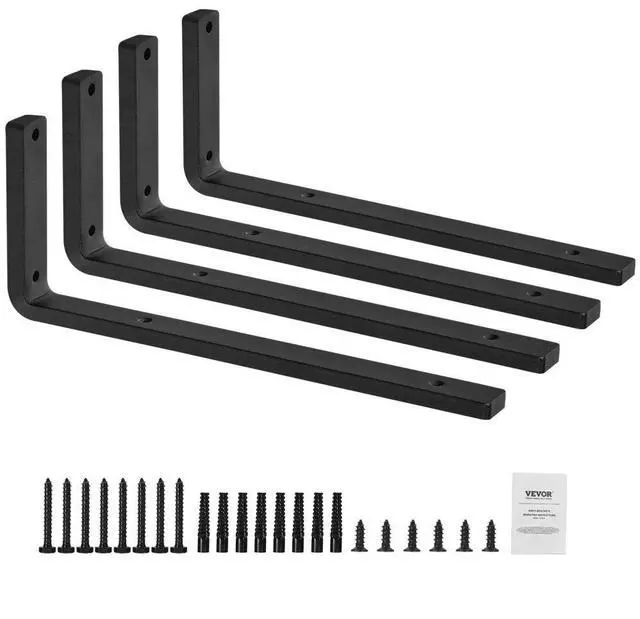 VEVOR Shelf Bracket, 16 x 6 in 4 Pcs, Heavy Duty Floating Shelf Brackets, Brackets for Shelves, 10mm Thick Matte Black L Shelf Bracket,Steel Shelving Brackets with 160 lbs Load Capacity