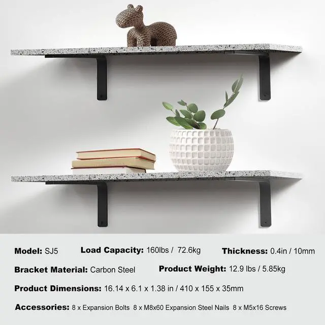 Thickness: 0.4in / 10mm,Load Capacity: 160lbs / 72.6kg,Model: SJ5,Product Weight: 12.9 lbs / 5.85kg,Product Dimensions: 16.14 x 6.1 x 1.38 in / 410 x 155 x 35mm,Bracket Material: Carbon Steel