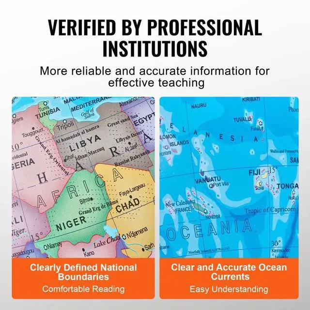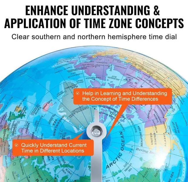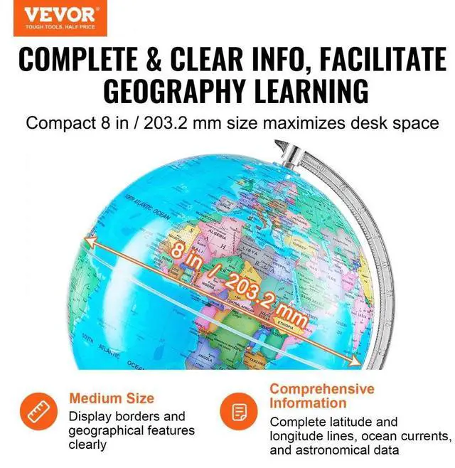 VEVOR Rotating World Globe with Stand, 8 in/203.2 mm, Educational Geographic Globe with Precise Time Zone ABS Material, 360° Spinning Globe for Kids Children Learning Classroom Geography Education