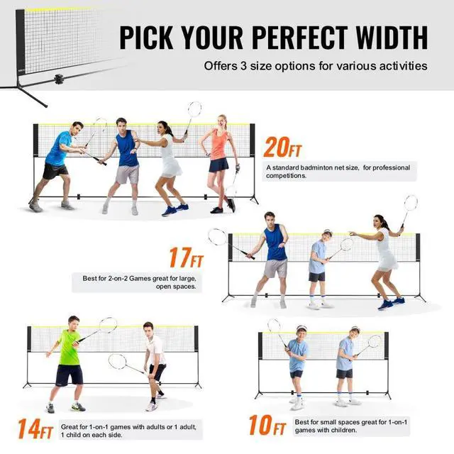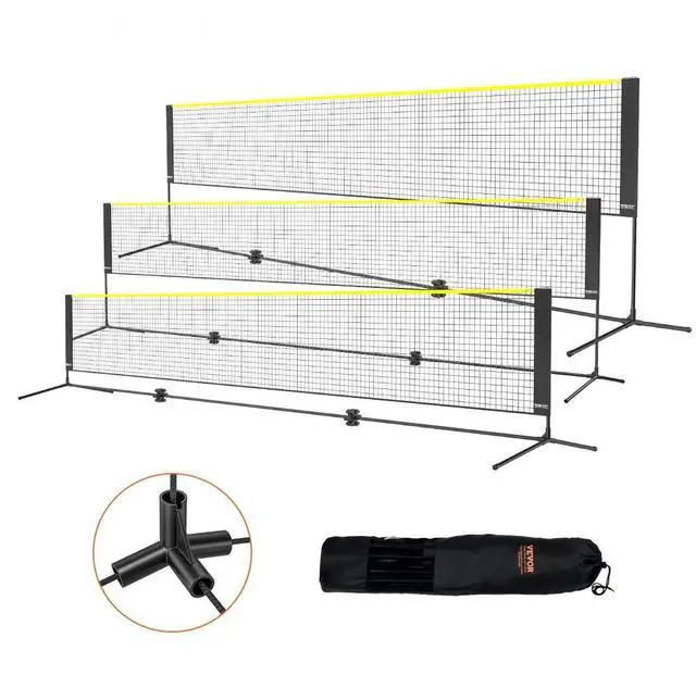 VEVOR Badminton Net, Height Adjustable Volleyball Net, 17ft Wide Foldable Pickleball Net, Portable Easy Setup Tennis Net Set with Poles, Stand and Carry Bag, for Kids Backyard Game Indoor Outdoor Use