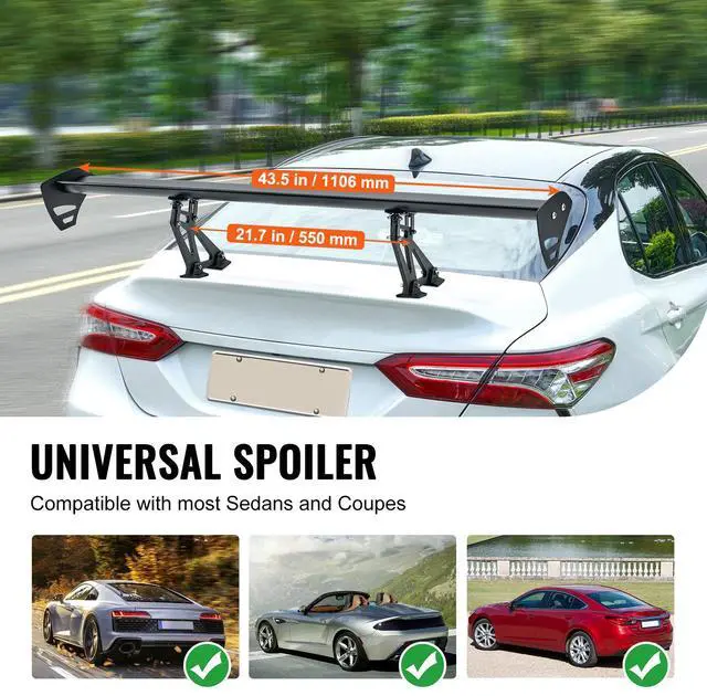 VEVOR GT Wing Car Spoiler, 43.3 inch Universal Spoiler with Single Deck, Adjustable Lightweight Aluminum, Car Rear Spoiler Wing, Racing Spoiler BGW/JDM Drift Black
