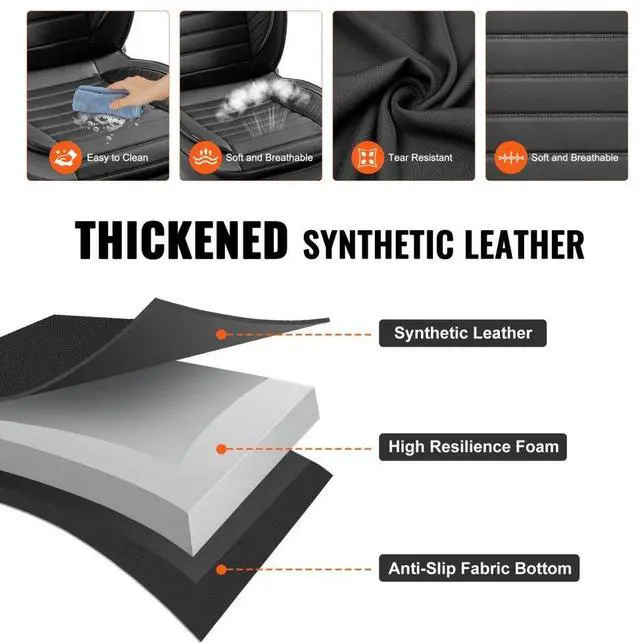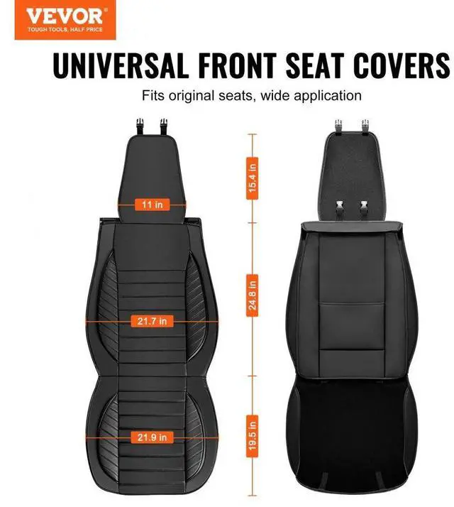 VEVOR Seat Covers, Universal Car Seat Covers Front Seats, 2pcs Faux Leather Seat Cover, Semi-enclosed Design, Detachable Headrest and Airbag Compatible, for Most Cars SUVs and Trucks Black