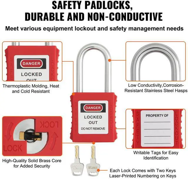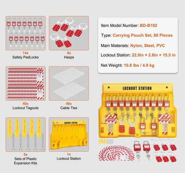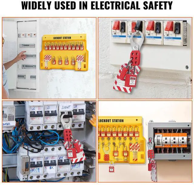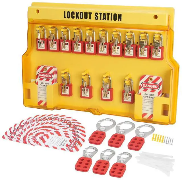 VEVOR Electrical Lockout Tagout Kit, 60 PCS Safety Lockout Tagout Station Includes Padlocks, Hasps, Tags, Nylon Ties, Expansion Kit, and Lockout Station Board, for Industrial, Electric Power