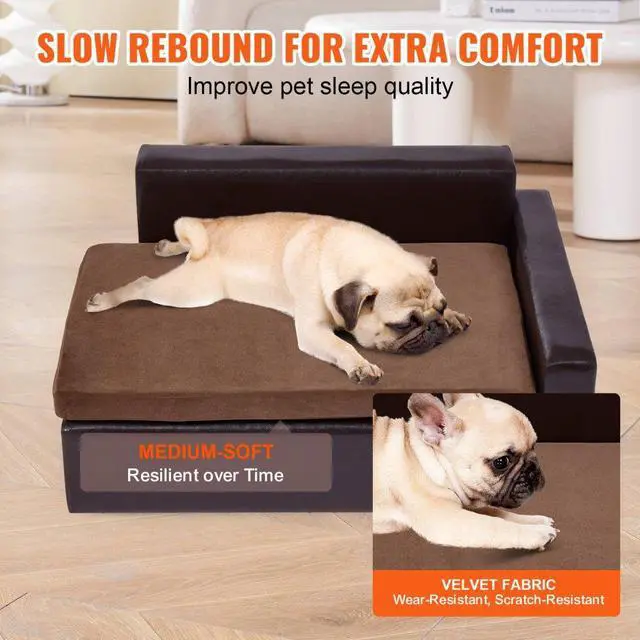 VEVOR Pet Sofa, Dog Couch for Medium-Sized Dogs and Cats, Soft Leather Dog Sofa Bed, 110 lbs Loading Cat Sofa, Black