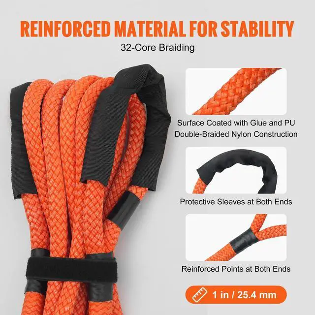 VEVOR 1" x 20' Kinetic Recovery Tow Rope 38,000 lbs, Heavy-Duty Off Road Snatch Strap, Extreme Duty 30% Elasticity Energy Snatch Strap for Jeep Car Truck ATV UTV SUV Tractor
