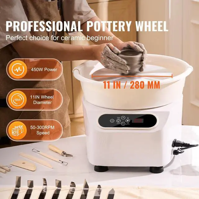 VEVOR Pottery Wheel, Direct Drive Ceramic Wheel with Shaping Tools for DIY Art Craft, 11 inch Pottery Forming Machine, 450W Electric Wheel for Pottery with Foot Pedal and LCD Touch Screen, White