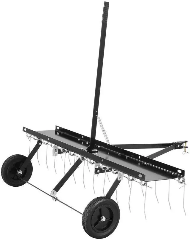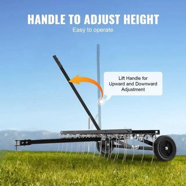 VEVOR Tow Behind Dethatcher, 48-inch Tow Dethatcher with 24 Spring Steel Tines, Lawn Dethatcher Rake for ATV or Mower, Tow Behind Lawn Rake with Lift Handle for Garden Farm Grass