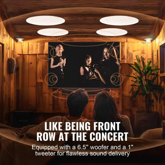 VEVOR 4 PCs 6.5'' Bluetooth in Ceiling Speakers, 150W, Flush Mount Ceiling & in-Wall Speaker System with 8Impedance 89dB Sensitivity, for Home Kitchen Living Room Bedroom or Covered Outdoor Porches