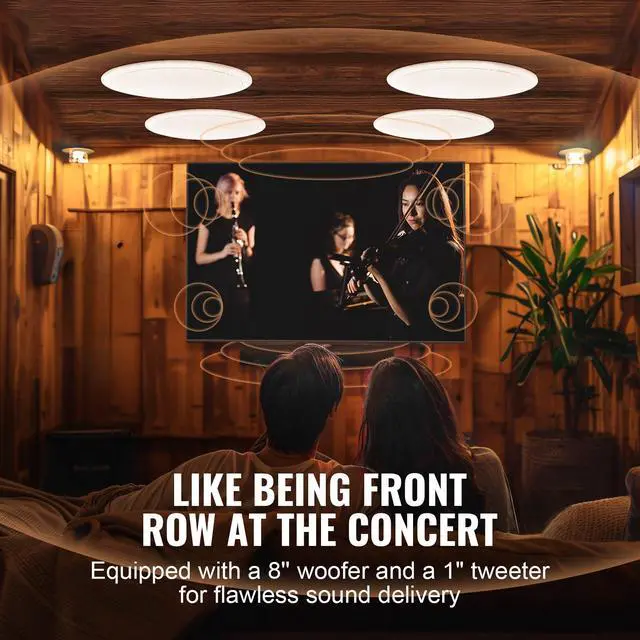 VEVOR 4 PCs 8 Inch in Ceiling Speakers, 100-Watts, Flush Mount Ceiling & in-Wall Speakers System with 8Impedance 89dB Sensitivity, for Home Kitchen Living Room Bedroom or Covered Outdoor Porches