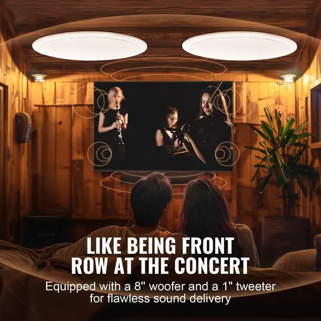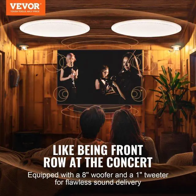 VEVOR 2 PCs 8 Inch in Ceiling Speakers, 50-Watts, Flush Mount Ceiling & in-Wall Speakers System with 8Impedance 89dB Sensitivity, for Home Kitchen Living Room Bedroom or Covered Outdoor Porches