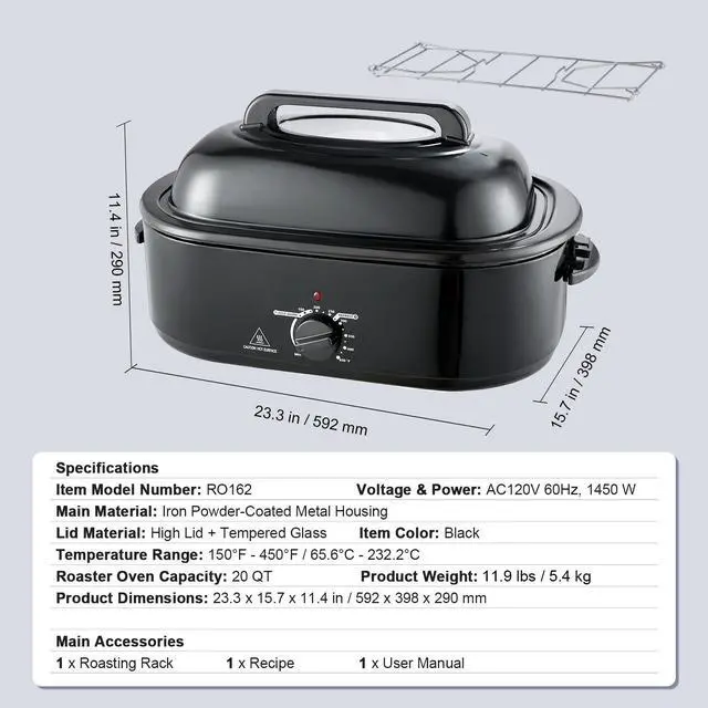 Temperature Range: 150°F - 450°F / 65.6 °C - 232.2 °C