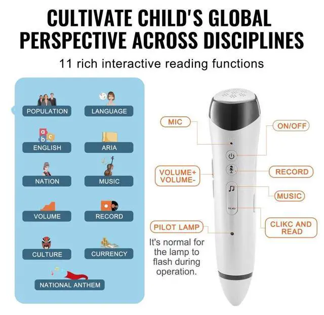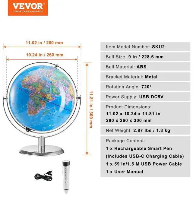 VEVOR Talking World Globe, 9 in/228.6 mm, Interactive Globe for Kids Early Learning Teaching, Educational Globe with Smart Talking Pen LED Night Light USB Interface, Gifts for Children Boys & Girls